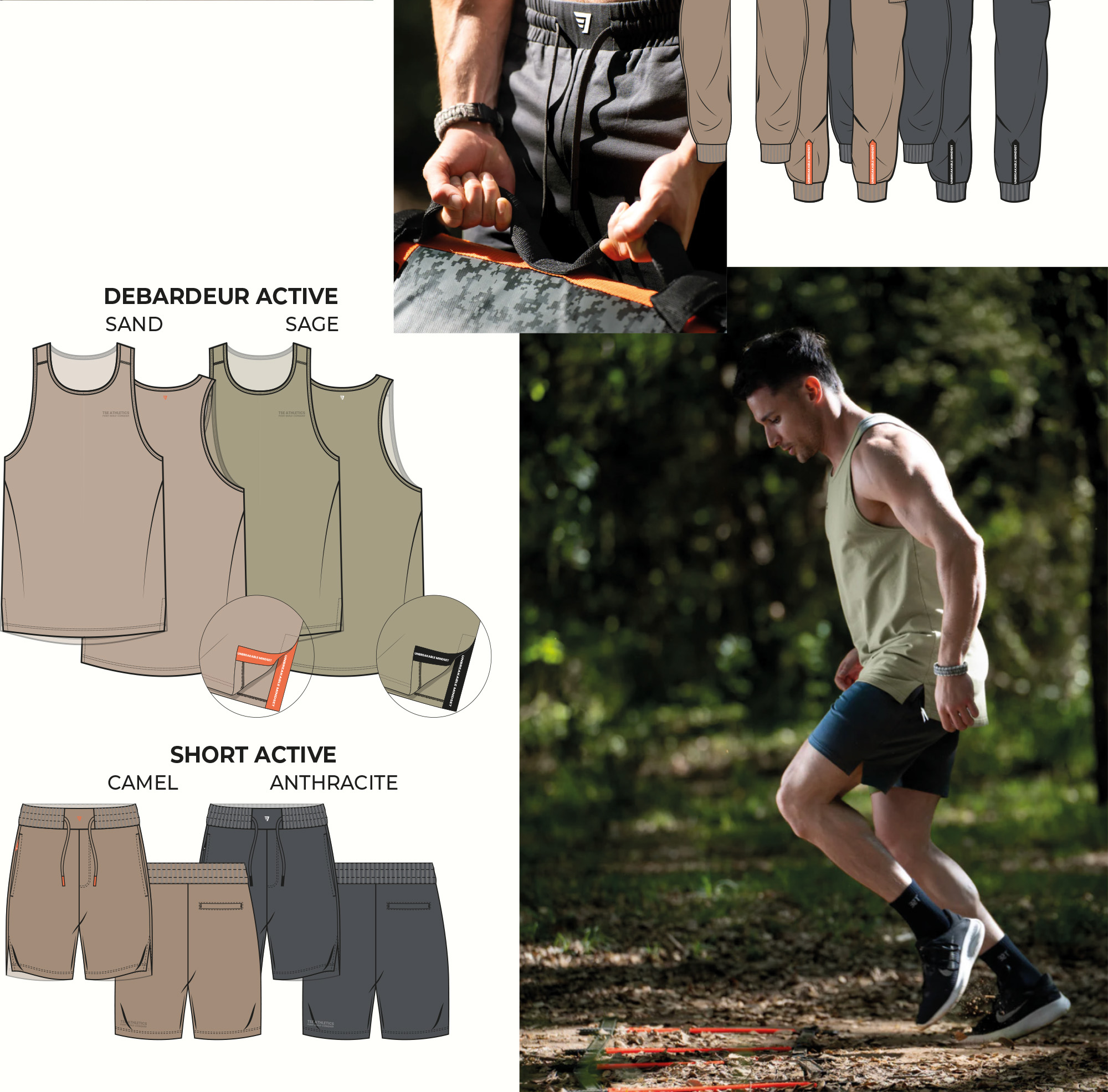 Création de la collection fitness homme printemps 2024, dans le cadre de mon salariat pour la marque TSE ATHLETICS.